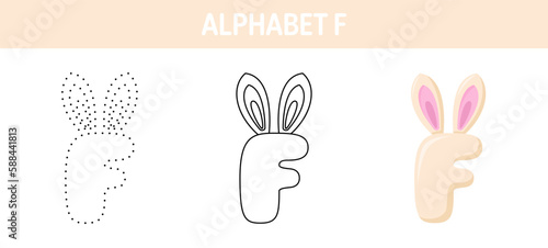 Obraz premium Alphabet F tracing and coloring worksheet for kids