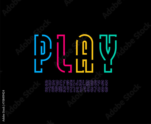 © marooshka, Naklejka premium Alphabet font from gap color line, lines cut letters and numbers, vector illustrator 10 eps