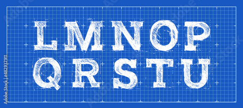 © Very Well Studio, Fototapeta premium Alphabet in style of a technical drawing. Hand line abc set. Sketched font. Vector illustration.