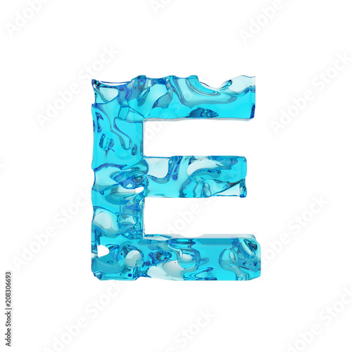 © gurzart, Fototapeta premium Alphabet letter E uppercase. Liquid font made of fresh blue water. 3D render isolated on white background.
