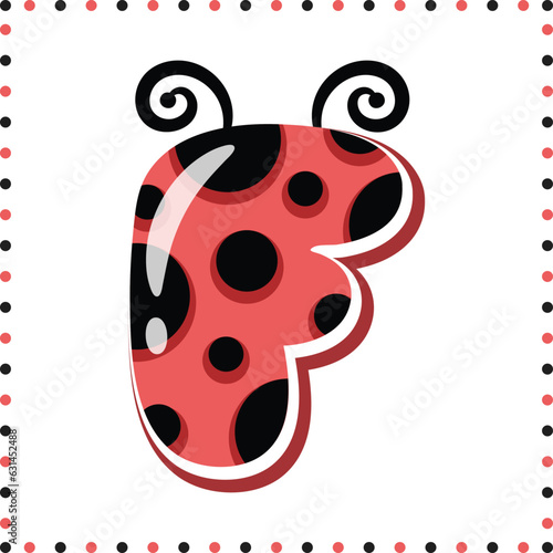 Obraz premium Alphabet letter F cute ladybug theme drawing