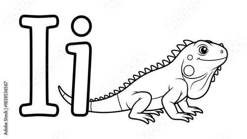 Naklejka premium Alphabet letter i with iguana outline for kids' learning and coloring activities