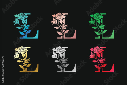 © Ghulam, Fototapeta premium Alphabet Letter L With Floral Design And Leaves Vector Design