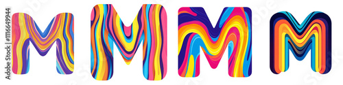 Obraz premium Alphabet M, made with bright wavy colorful pattern, Logo design, letter, isolated on a transparent background
