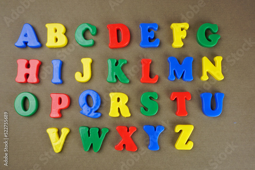 © Raksha Shelare, Fototapeta premium Alphabet on color background. School and education concept. Empty space for text and design