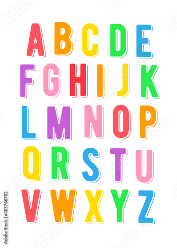 © Yahya Art, Fototapeta premium Alphabet rainbow colorful design illustration for kids. Vector rainbow hand drawn illustration. rainbow illustration poster kids.
