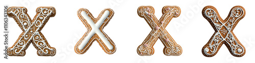 Obraz premium Alphabet X, made with gingerbread cookie, Logo design, letter, isolated on a transparent background