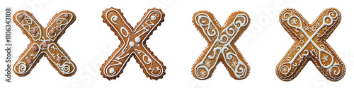 Fototapeta premium Alphabet X, made with gingerbread cookie, Logo design, letter, isolated on a transparent background