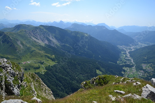 © Stefano Gasparotto, Obraz premium Alpi Carniche - panorama da cresta Timau verso bosco del Pramosio, Paluzza e Arta Terme