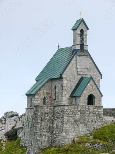 Fototapeta premium Alpine Chapel on Mountain Top