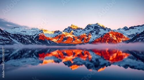 Obraz premium Alpine lake reflecting mountains at twilight