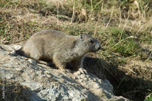 Naklejka premium Alpine marmot on mountain meadow