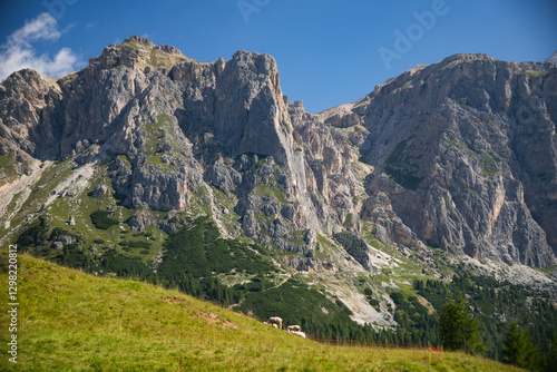 © erika8213, Obraz premium Alpine meadow in the mountains, The Dolomites, Italy
