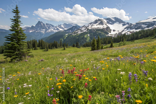 Naklejka premium Alpine meadow with wildflowers