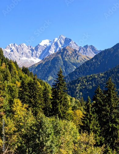 © Ranto, Fototapeta premium Alpine scenery with snow-capped peaks