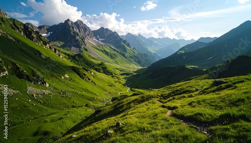 © Giman, Fototapeta premium Alpine valley bathed in sunlight