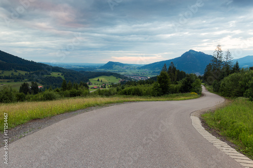 Fototapeta premium Alpy Bawarskie z widokiem na góry i łąki w Allgau