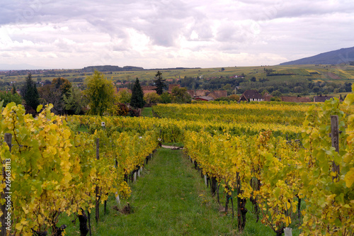 Naklejka premium Alsace vineyard in autumn in france with raws of vines