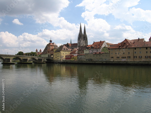 Naklejka premium Alstadtidyll Regensburg mit Dom und steinerner Brücke