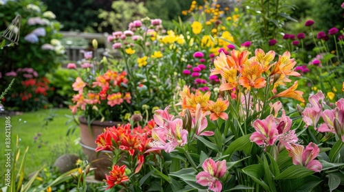 Fototapeta premium Alstroemeria Apollo with Summer Flowers in a Country Cottage Garden in Rural...