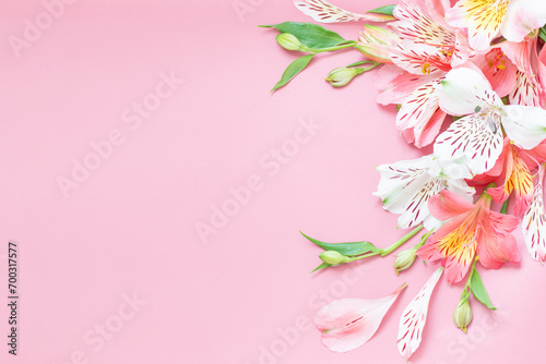 Naklejka premium alstroemeria flowers on pink background