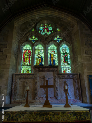 Fototapeta premium Altar and stained glass window in The Parish Church of Saint Mary (Lower...
