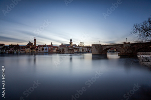 © Thomas, Naklejka premium Alte Mainbrücke in Kitzingen mit Langzeitbelichtung