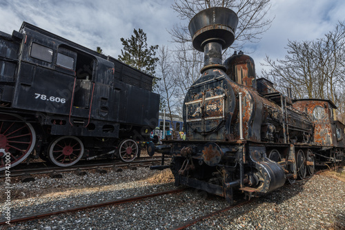 © thomaseder, Fototapeta premium alte rostige dampflokomotiven auf einem platz