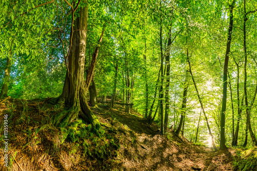 Naklejka premium Alter Baum auf einem Hügel im Wald