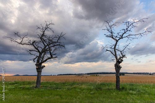 Obraz premium alter Baum gegen Himmel mit Lichstimmung Abendhimmel