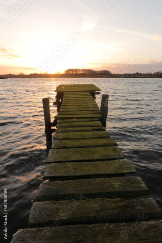 © Lars Gieger, Obraz premium Alter mit Moos bewaxhsener Bootssteg am See, Hochformat