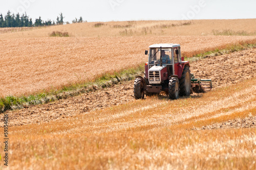 © Blende-8, Obraz premium alter Traktor beim pflügen
