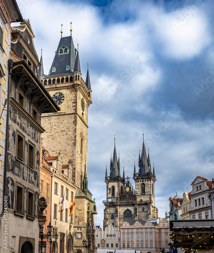 Fototapeta premium Altes Rathaus und Kirche vor dem Teyn in Prag, Tschechische Republik