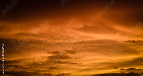 Fototapeta premium Altostratus clouds in golden sunset. Evening Cloudscape.