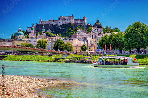 © mojolo, Fototapeta premium Altstadt von Salzburg mit Salzach und Festung Hohensalzburg, Österreich