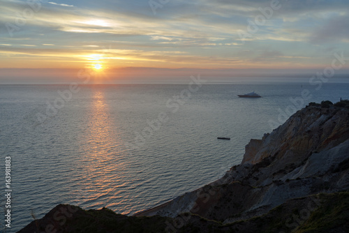 Fototapeta premium Alum Bay on the Isle of Wight, captured at sunset