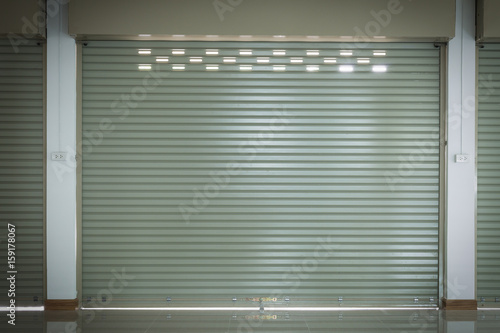 © sutichak, Fototapeta premium Aluminiowa metalowa brama roletowa w budynku magazynowym