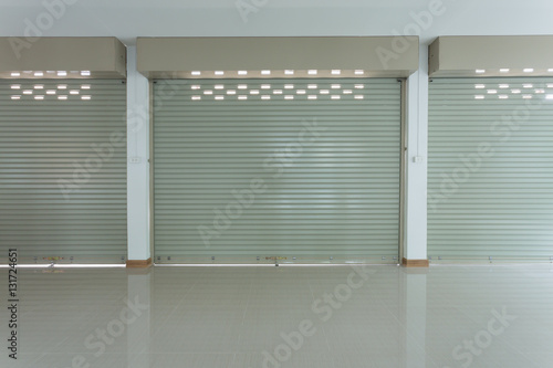 Naklejka premium Aluminium steel metal roller shutter door in warehouse building