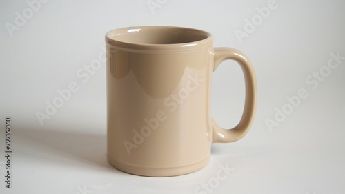 © Osama, Fototapeta premium Aluminum mug in beige color with space for text, an inscription, or a logo.