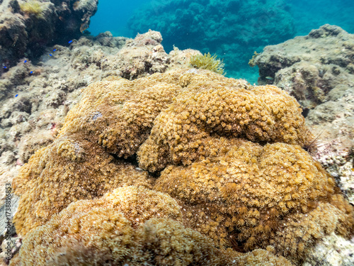 Fototapeta premium ニホンアワサンゴ, Alveopora japonica Eguchi, ミドリイシ科, 他の群れ。 静岡県伊豆半島南伊豆町中木ヒリゾ浜-2025年