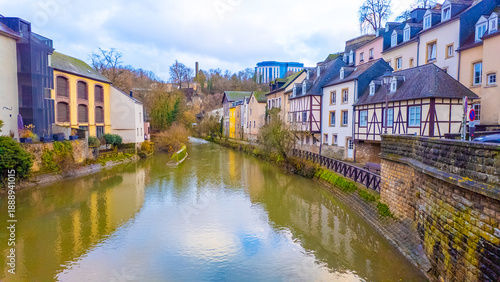 © Kyrenian, Fototapeta premium Alzette River in Luxembourg as seen from the bridge "Pont du Grund".