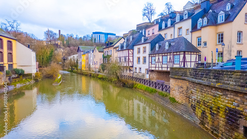 © Kyrenian, Fototapeta premium Alzette River in Luxembourg as seen from the bridge "Pont du Grund".