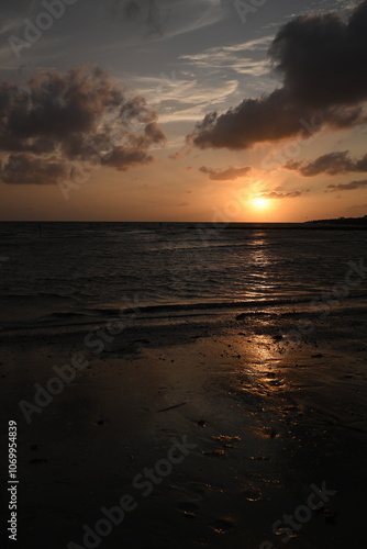 Obraz premium am Strand von Büsum - dramatisch schöner Sonnenuntergang