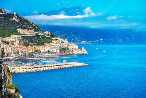 Naklejka premium Amalfi town and coast, panoramic view. Italy
