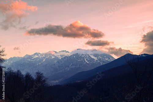 © LuisManuel, Obraz premium Amanece en los Picos de Europa y todo se vuelve azul y rosa