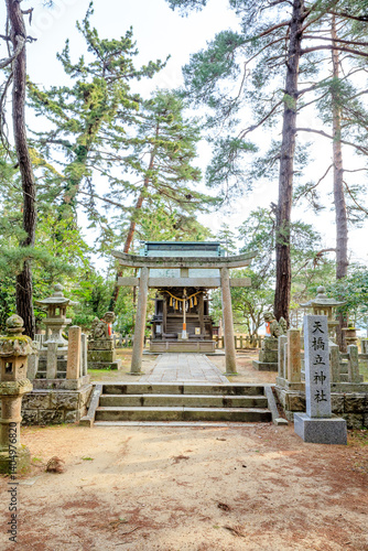 Obraz premium 春の天橋立神社 京都府宮津市 Amanohashidate Shrine in Spring. Kyoto Pref, Miyazu City.
