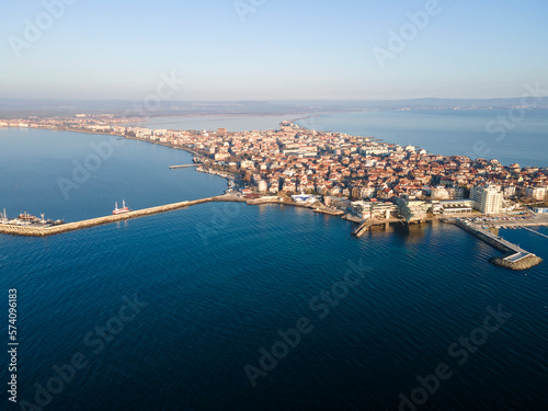 Fototapeta premium Amazing Aerial Sunrise view town of Pomorie, Bulgaria