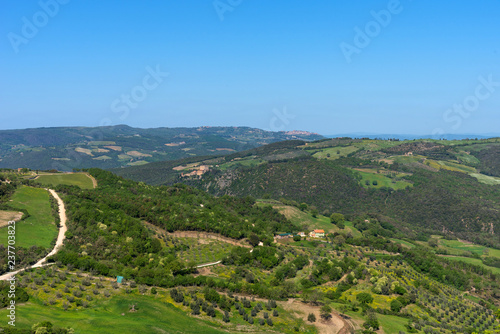 Fototapeta premium Amazing aerial view of Tuscany from Fortress of Tentennano. Beautiful...