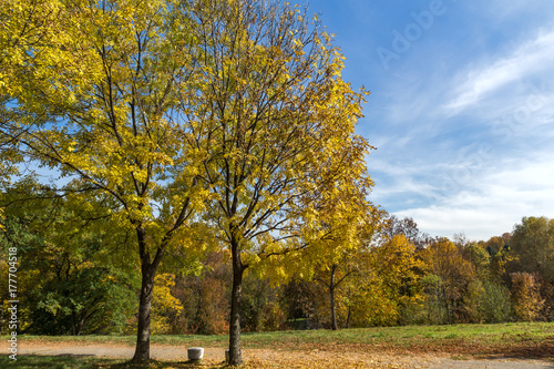 Fototapeta premium Amazing Autumn landscape with Yellow trees in South Park in city of Sofia, Bulgaria