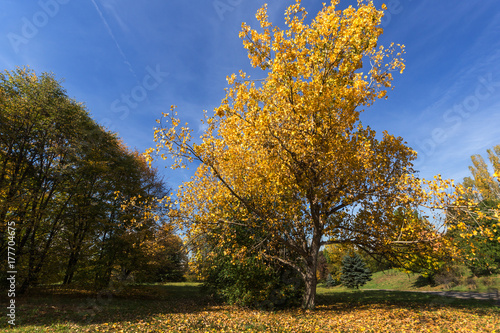 Fototapeta premium Amazing Autumn landscape with Yellow trees in South Park in city of Sofia, Bulgaria
